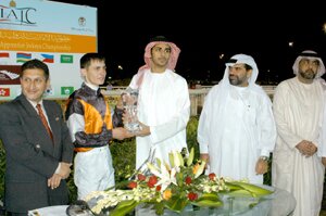 عبر الفارس التركي تارهان مصطفى صاحب المركز الأول في البطولة الدولية للفرسان المتمرنين عن سعادته الكبيرة لفوزه بهذا اللقب والذي نسعى من أجله . وأكد الفارس الذي يبلغ من العمر 23 عاماً ووزنه 52كلج ان الفوز بالبطولة الدولية يضاف لانجازاته التي حققها في سباق القوائم التركية . وذكر انه بعد التحاقه بالجوكي كلوب التركي عام 2001 تم ارساله الى أكاديمية السباقات في ايرلندا لأجل التدريب المبدئي للتطور في مهنته وبعد عودته لتركيا استمر في اكتساب الخبرة والتطور للدرجة التي بدأ الجميع يفكر فيه كفارس متمرن .